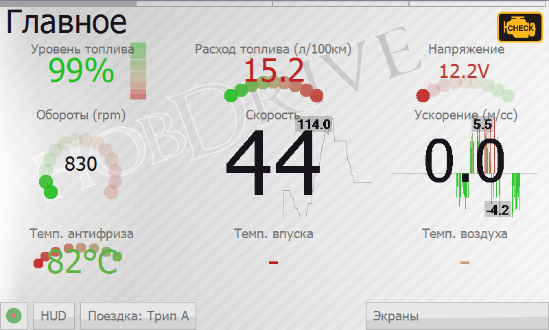 Помимо описанных выше основных, хобДрайв предоставляет расширенную диагностическую информацию об автомобиле в дополнительных экранах.