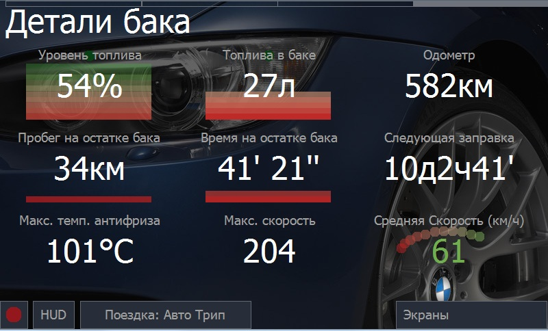 В дальнейшем хобдрайв будет сам уменьшать расчетное количество топлива в баке. Для поддержания его в актуальном состоянии, необходимо вести записи о заправках.