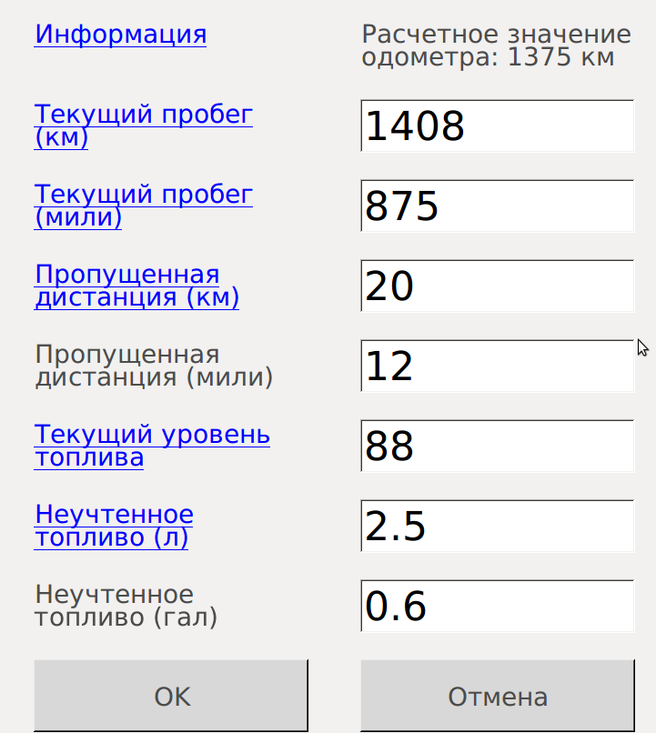 Если ваш автомобиль отдает показания «настоящего» одометра, эти данные так же будут автоматически введены в поля, вам останется лишь проверить их.