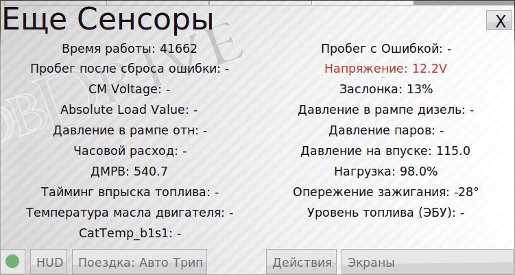Экран показывает дополнительные сенсоры, в основном интересные для профессиональной диагностики.