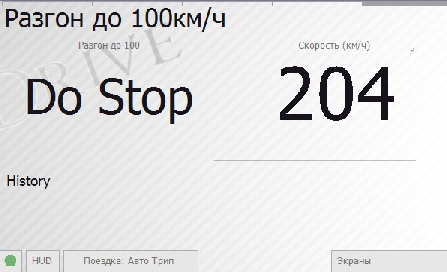 Экран, позволяющий замерить эффективность автомобиля при разгоне до 100 км/ч.